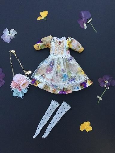 ワンピースとお花のバッグ、ソックスの3展セットです。